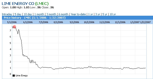 Does My Last Employer Miss Me? January 25, 2007 • by MAS Finance #work Since I left my last job on May 5th 2006, I haven’t heard from anyone in the company. However, I have noticed that the stock tanked shortly after I quit. The red dot on the chart below is the day I left. Too bad I didn’t think to short the stock.