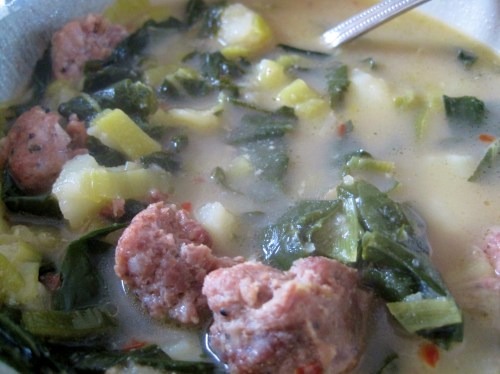 Summary: A Toscana soup recipe using a spicy goat sausage.