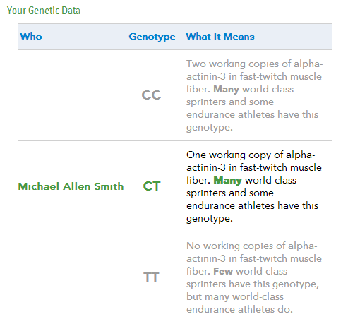 @StuartG - I see your point, but it works both ways. A year ago, I revisited minor details in Body By Science and came away thinking I wasn’t a best responder to high intensity. Then I got the 23andMe and was pleasantly surprised. Without the test, I would have assumed I was a TT. So it helped my discovery.