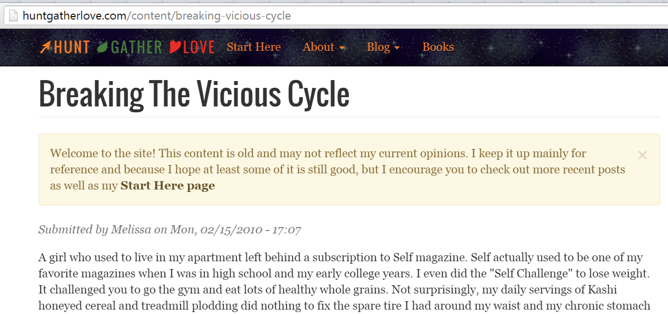 (3) I happened across this post of Melissa McEwen’s recently ( http://huntgatherlove.com/content/breaking-vicious-cycle ) that is 5 years old. Here’s the image: http://3.bp.blogspot.com/-7O6DuL8wn6s/Vfm0LPzftEI/AAAAAAAAKE8/2kAllO5Yn2s/s1600/Screenshot%2B-%2B9_16_2015%2B%252C%2B11_07_19%2BAM.png