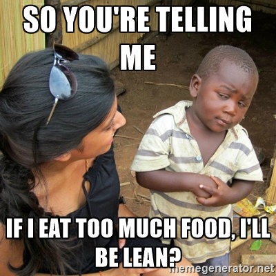 Now, I realize that any suggestion to eat such foods is meant to be temporary. So, perhaps I should be more understanding. However, what, exactly, was it that led people to be overweight in the first place? Were they eating too LITTLE?