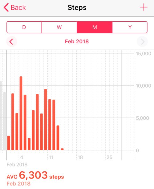 - For me, the iOS step data is enough. I’ll step 5-7,000 when my knee is bad and 10-15k if it ever gets better.