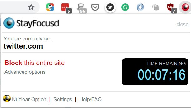 I set up the StayFocusd Chrome extension to only allow me a maximum of 15 minutes a day on Twitter. After that, it locks me out. This extension is a godsend. I move with a sense of purpose. I don’t have time to read every silly drama. Look for signal, avoid the noise, and get out.