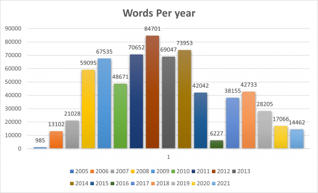 This is the SQL query for the total word count by year.