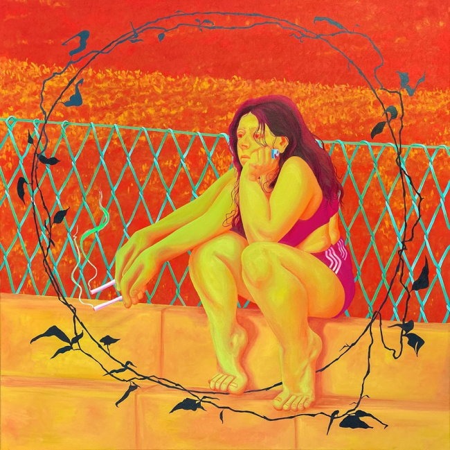 Sitting, smoking, spiraling (2022) by Elena Redmond (via Artvee)