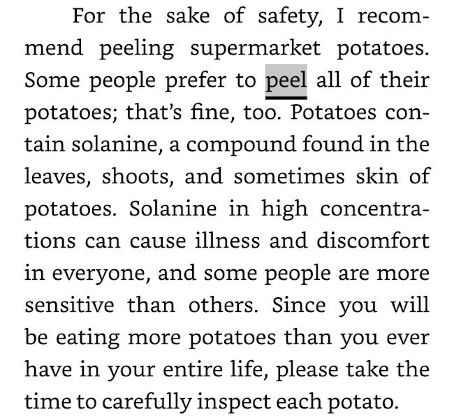 What about organic potatoes? Read this 2018 comment from Maureen, which supports Steele’s concern about high solanine levels in potato peels.