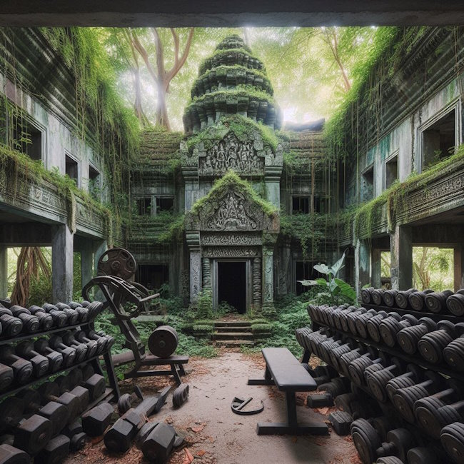 After decades of low birth rates and neglect, this Glitter Gym has been absorbed by nature like a temple at Angkor Wat.